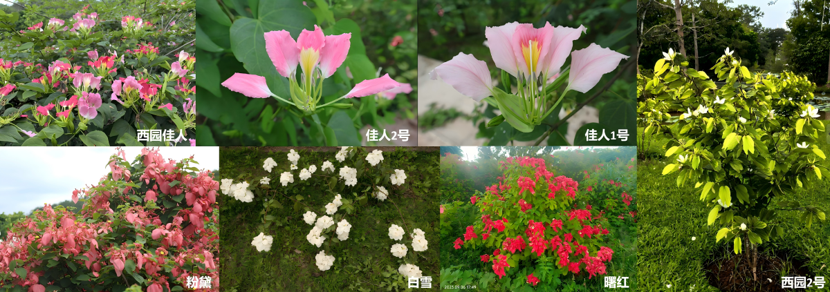 Recently, the National Forestry and Grassland Administration of China has granted several new Plant Variety Rights (PVR) to Xishuangbanna Tropical Botanical Garden (XTBG). This achievement marks significant progress for XTBG in the fields of new plant variety breeding and intellectual property protection. As a crucial base for biodiversity conservation and research in China, XTBG is dedicated to the collection, preservation, and innovative utilization of tropical plant resources. The seven newly authorized varieties (Names and Variety Rights Numbers: 'Xiyuan 2' 20250941, 'Xiyuan Jiaren' 20251146, 'Jiaren 1' 20251145, 'Jiaren 2' 20251144, 'Fendai' 20251185, 'Baixue' 20251313, 'Shuhong' 20251082) belong to the Bauhinia and Mussaenda genera. These were all developed by the research group led by Wu Fuchuan. Wu Fuchaun and his team have long focused on the evaluation and innovation of tropical characteristic plant germplasm resources. The creation of these new varieties involved a long process, from wild resource investigation and selection of superior germplasm to cross-breeding and years of stability testing. Securing these Plant Variety Rights demonstrates XTBG's continuous progress in the artificial breeding and intellectual property protection of characteristic plants. These new varieties hold potential for future applications in areas such as urban landscaping, ecological landscape construction, and specialized agricultural development, injecting new "green momentum" into the construction of a Beautiful China and regional green development.