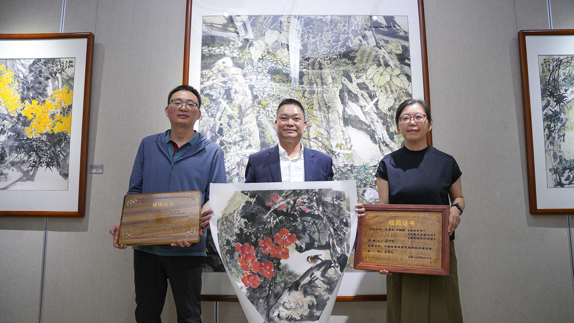 Wang Jinyuan’s widow, Ms. Cai Zhongming, along with their children Wang Yunbo and Wang Yue, donated historical artifacts related to Cai Xitao to the Cai Xitao Memorial Hall. They also generously presented three original paintings by Wang Jinyuan to XTBG.
