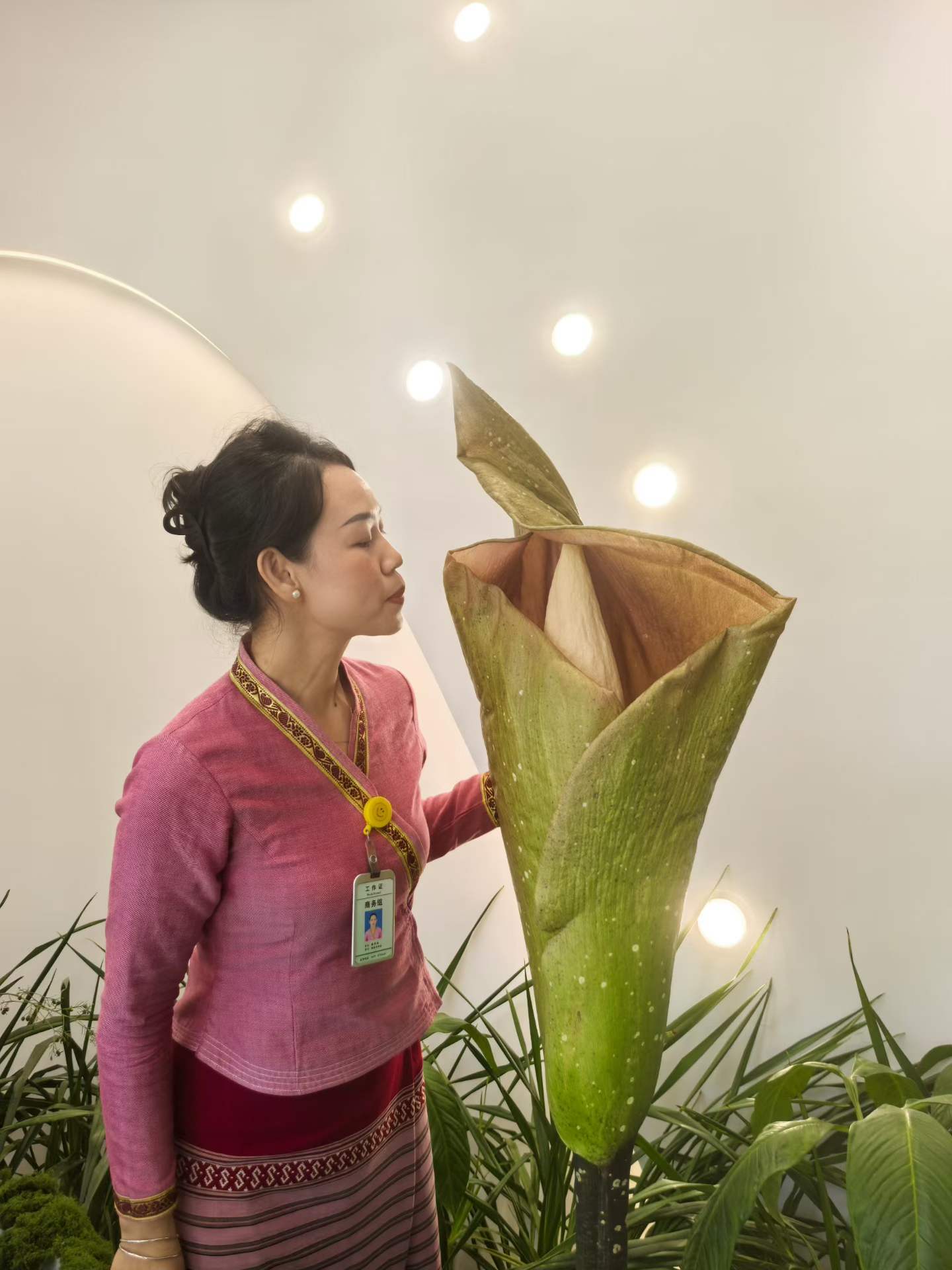 A rare and remarkable flowering event is currently taking place at Xishuangbanna Tropical Botanical Garden (XTBG) of the Chinese Academy of Sciences, where the unique "corpse flower" has finally bloomed. Known scientifically as Amorphophallus gigas, this enormous plant is infamous for the pungent odor it releases upon blooming, a smell often compared to rotting flesh.