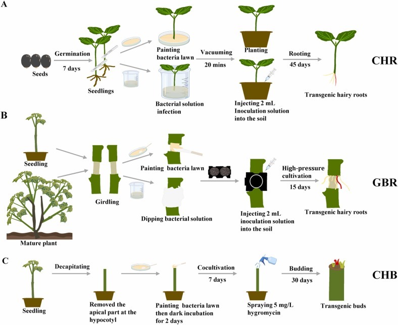 Schematic diagram of three transformation systems in Jatropha curcas. (Image by SU Yiqing)