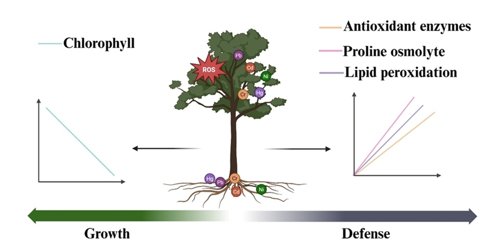 The results showed that when exposed to toxic metals, plants actively adjust their strategy, shifting resource allocation away from growth and toward defense. They slow down their growth with reduced chlorophyll levels and ramp up their defense systems, producing more protective substances like proline and antioxidants.
