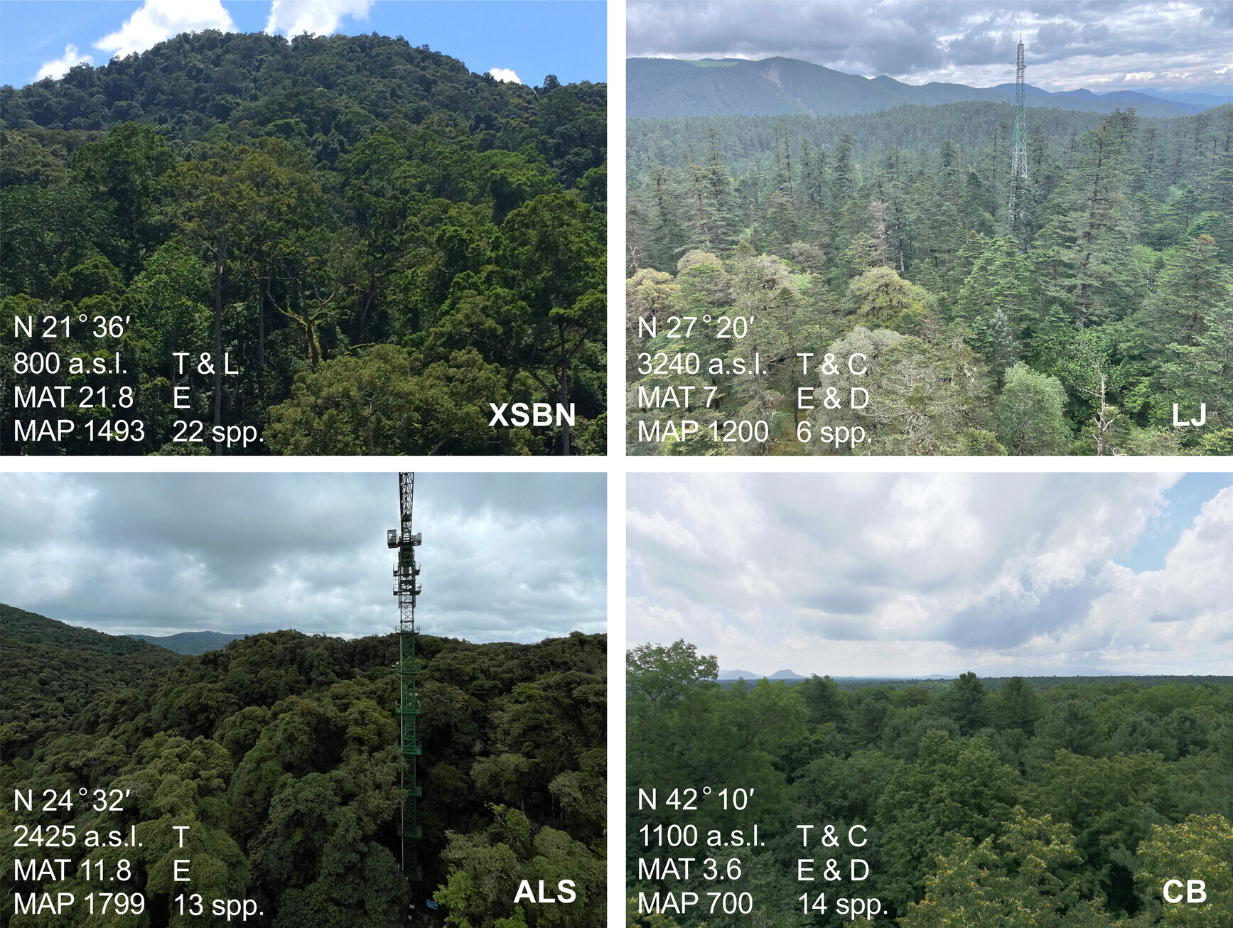 Canopy view of the four typical Chinese forests. (Image by XTBG)